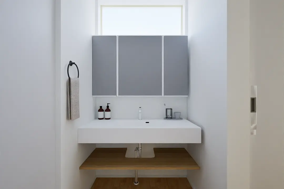 無垢とルーバーに光がそっと満ちる、34坪の住処。